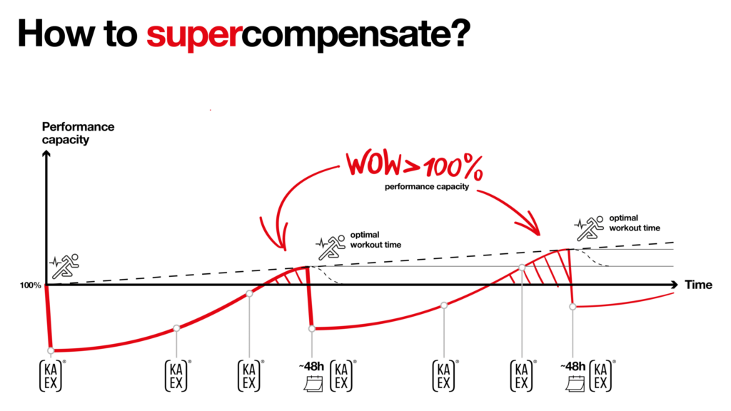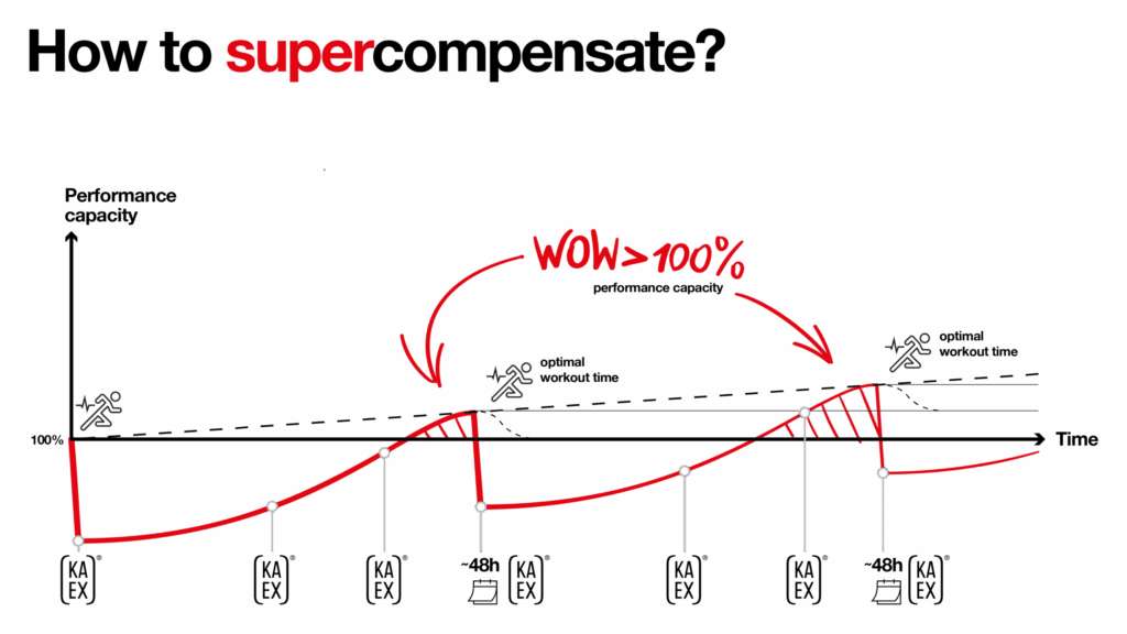 *Supercompensation is the scientific term where the body’s performance capacity temporarily exceeds its baseline level after a period of recovery after intense training. Maximal supercompensation means higher gains in muscle growth, endurance, and other performance factors.